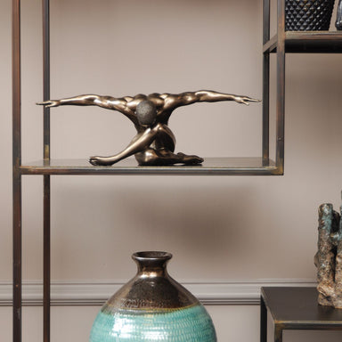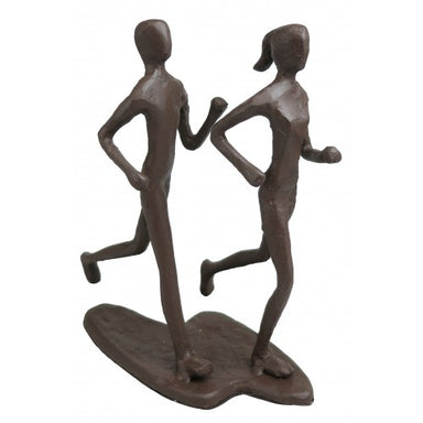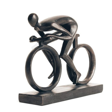 This large bronze colour cyclist has a modern twist with a solid feel and clean lines. Show them off as a racing pair! Dimensions: H 17cm W 21cm D...