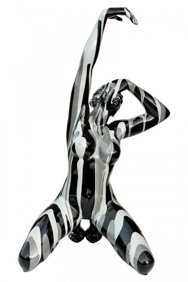 A large black and grey striped resin statue of an attractive kneeling lady posing in a striking yet provocative pose. A truly outrageous piece of m...