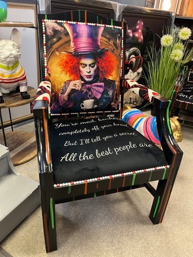Hard Wood Frame, Hand Crafted, black/white/ Velvet Seat Pad, Button pinned finishes. Graffiti Dripping paint finish. Velvet padded arm caps. Each ...