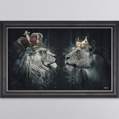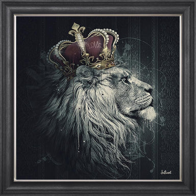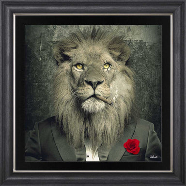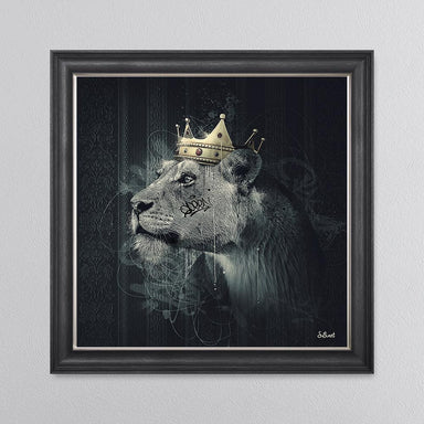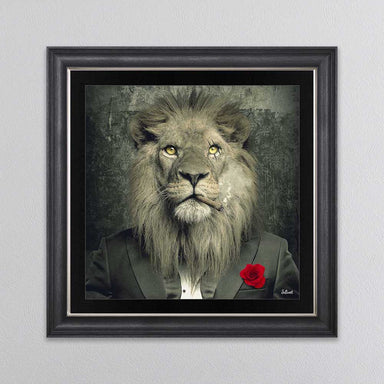 Lion by Murciano in a 3 step two tone frame with liquid art on the glass. size 85 x 85 cm