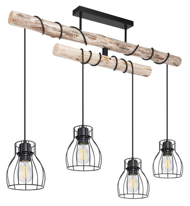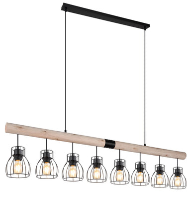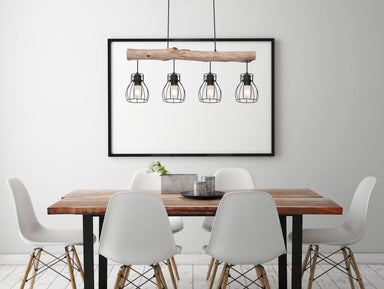 This is an extravagant stylish pendant lamp MINA made of black metal, which cuts a fine figure in almost every room. On a hanging wooden beam there...