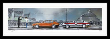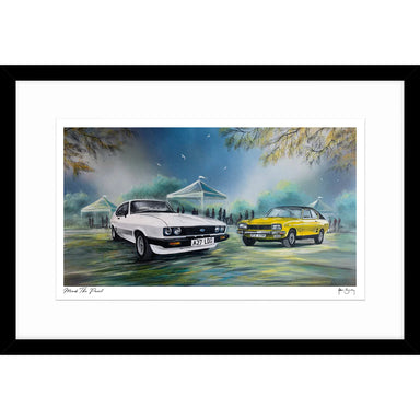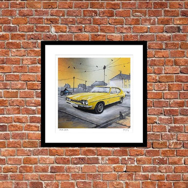 Old school picture Mellow Yellow Adam Barsby Size = 61 x 61 cm Black wood frame with picture and mount with glass.