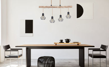 The hanging light from the Priska series impresses with its elegant/modern design. The black diamond-shaped metal grille shades attract attention. ...