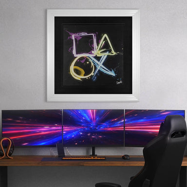 Here is the PlayStation liquid art picture, comes in a white 3 step frame and liquid art on the glass that really brings it to life. SIZE = 90x ...