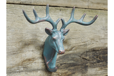 Rustic style wrought iron Stag Head hook. Authentic features and finished in a gorgeous blue colour. Perfect to add a touch of country charm to an...