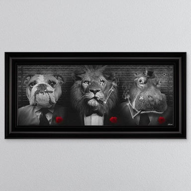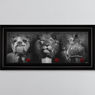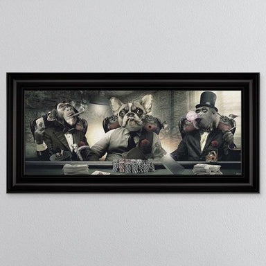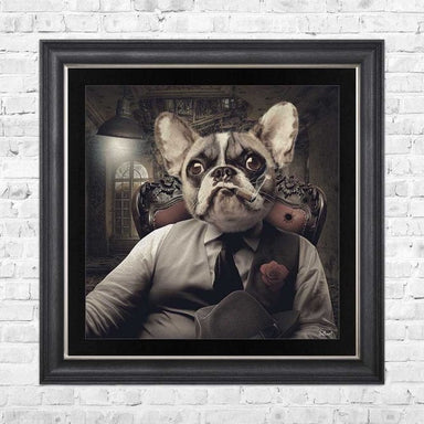 Frenchie Mafia picture in a grey Vegas frame size 90 cm x 90 cm
