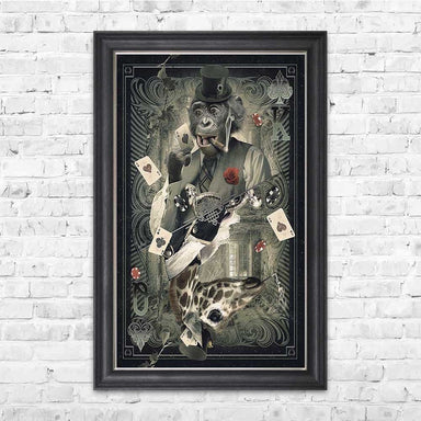 monkey and giraffe playing cards picture in a grey Vegas frame size 114 cm x 74 cm