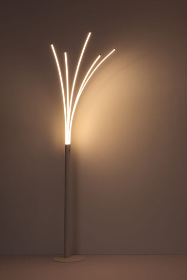 This floor lamp BIZZY made of white-matt metal and opal-white plastic glass is a modern eye-catcher in your home. With the included touch dimmer an...