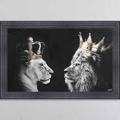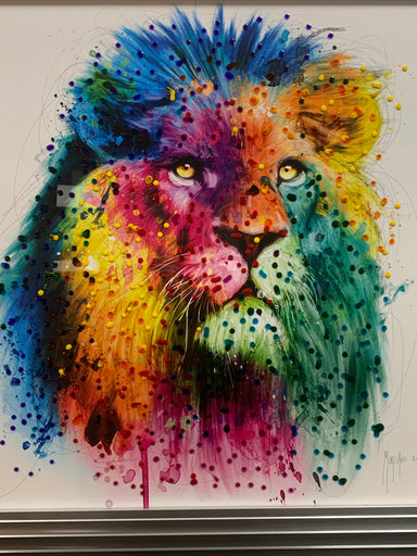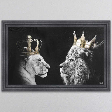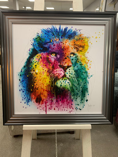 Lion by Murciano in a 3 step two tone frame with liquid art on the glass. size 85 x 85 cm