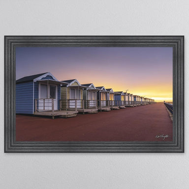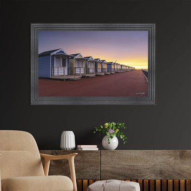 BEACH HUTS FRAMED WALL ART - 114CM X 74CM - CHARCOAL 3 STEP FRAME