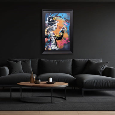 Charlie Chaplin et le Papillon by Romaric Framed Wall Art High resolution print with clear coat overlay on Foamex board Unrivalled colour saturati...