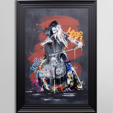 La Violoncelliste by Romaric Framed Wall Art High resolution print with clear coat overlay on Foamex board Unrivalled colour saturation and brig...